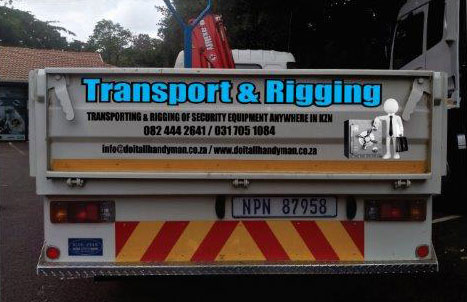 Transporting and Rigging Transporting and rigging of Security equipment anywhere in KZN and surrounding provinces. Fire Damaged Safe RemovedThe TeamSafe RiggingSafe Rigging up StaircaseSafe Rigging up Staircase 2Rigging Strong Room DoorOffloadingOffloading 2Hino 300 - 614Hino 300 - 614Vault Installation